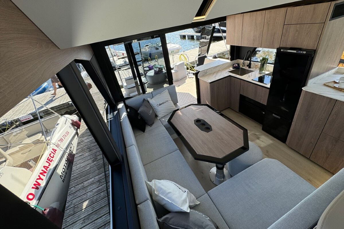Le Campione 41 Coupé est conçu pour les personnes qui, au lieu de passer du temps sur le toit du bateau, préfèrent se détendre dans le spacieux salon qui, dans cette version, offre l'option d'un toit en verre qui agrandit visuellement l'espace. Accueillir des invités dans les intérieurs lumineux et confortables du Campione 41 Coupe sera un véritable plaisir pour vous.